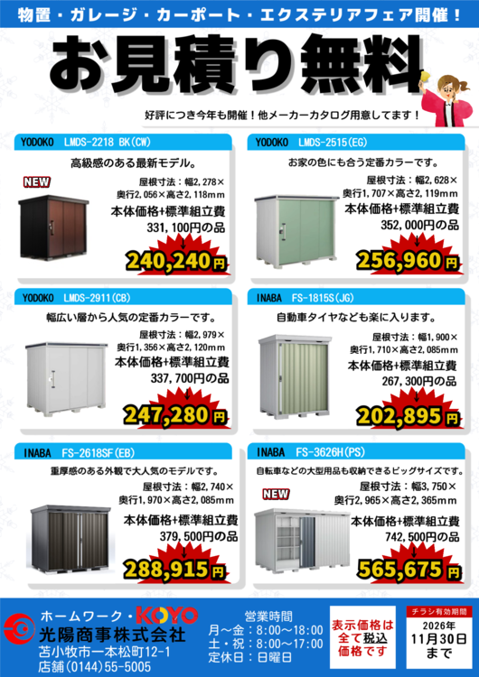 物置・ガレージ・カーポート・エクステリアフェア開催